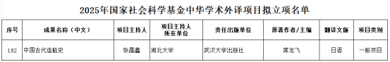 近日,全国哲学社会科学工作办公室公布了2025年国家社会科学基金中华学术外译项目拟立项名单,304永利集团官网入口张晶鑫副教授主持的《中国古代造船史》(日文版)入选。