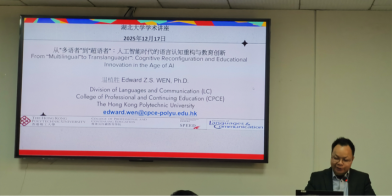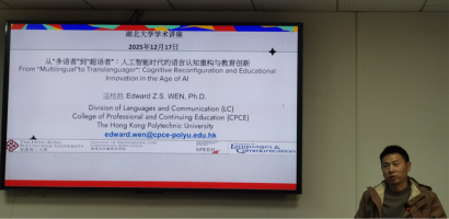 12月17日,香港理工大学温植胜博士应学院邀请,为学院师生作题为从“从‘多语者’到‘超语者’:人工智能时代的语言认知重构与教育创新”的学术讲座。本次讲座在逸夫人文楼A2014举行,由304永利集团官网入口副院长杨小彬教授主持。